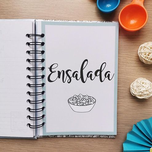 ♡ Pasta dura ♡ Viene con divisiones (Entrada, plato fuerte, ensalada, postre) ♡ Viene con 20 hojas por cada división ♡ Argollado ♡ Tamaño 19x13cm ♡ Incluye conversiones