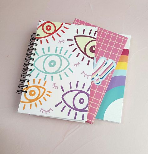 ♡ Pasta dura ♡ Portadas personalizadas ♡ 80, 120, 160 Hojas ♡ Argollado ♡ Tamaño aprox. 21x17cm ♡ Tipo Hojas: blancas o ecologicas ♡ Diseño Hojas: cuadriculadas, rayas, nota o blancas