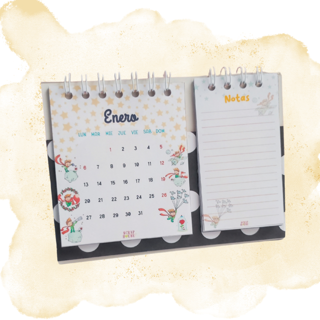 Calendario de escritorio inspirado en El Principito: una mitad dedicada a las fechas y festivos de Colombia, y otra para tus notas y recordatorios. Ideal para darle un toque mágico a tu organización.